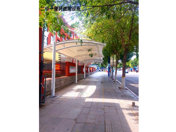 景观膜结构:临朐第二实验小学便民遮阳膜结构